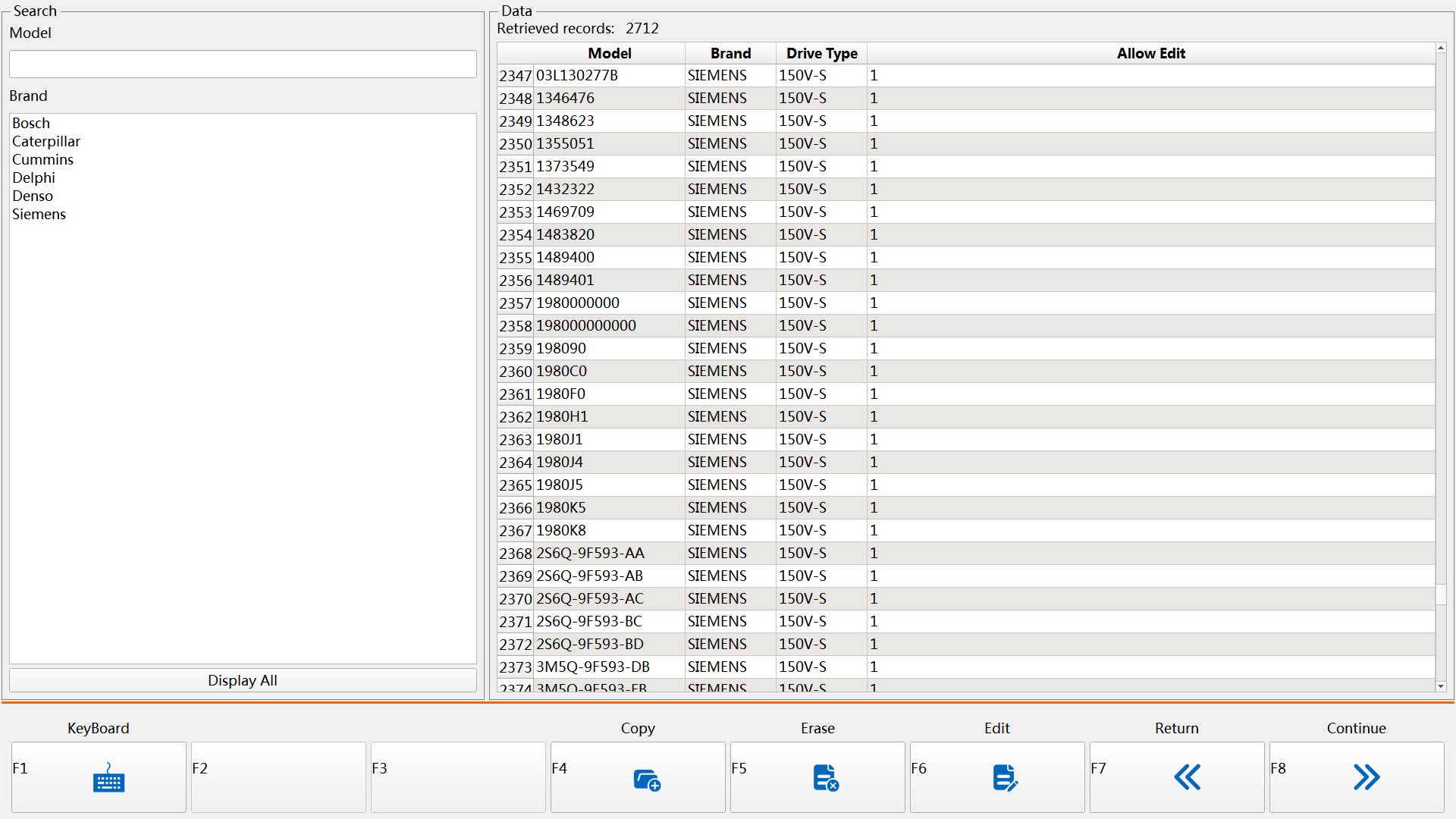 - Sve vrste dizni ,trenutna baza 2717 dizni( mehanicke, elektromagnetne, piezo, EUI, HEUI ) svih proizvodjaca (Bosch,Desno,Simens/Cont. ,Delphi, CAT, Cummins itd ) gde podatke mozete sami menjati, dodavati nove dizne, svoje testove itd.
